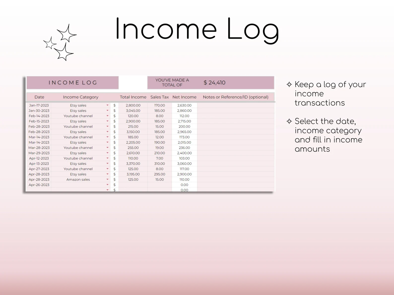 •Track income and expenses in a clear, organized way