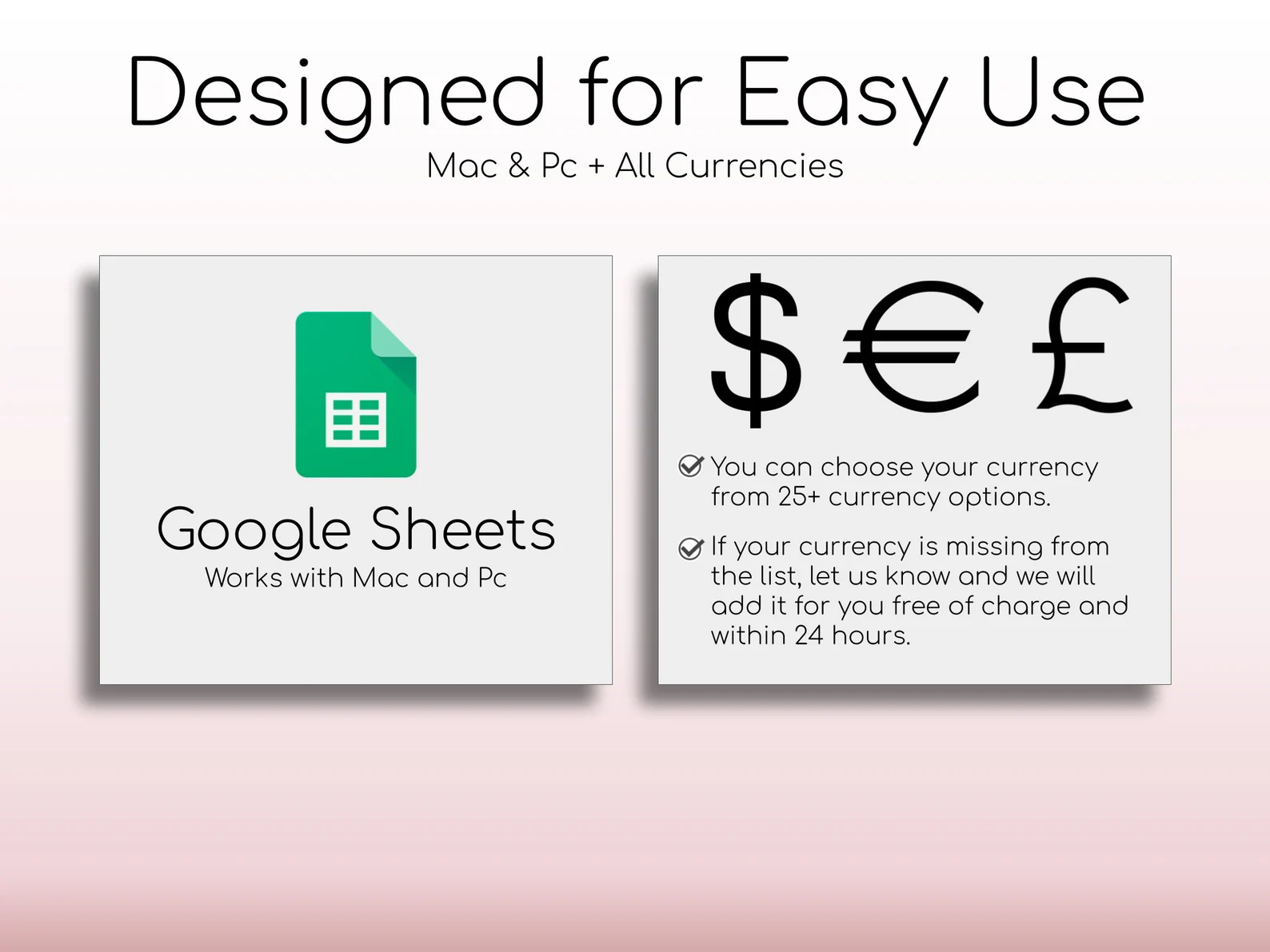 Instant digital download · Easy to customize · Works with all currencies