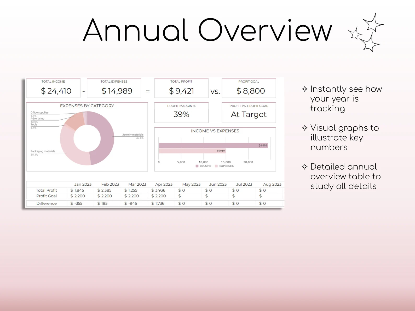 ✔ Annual summary dashboard
